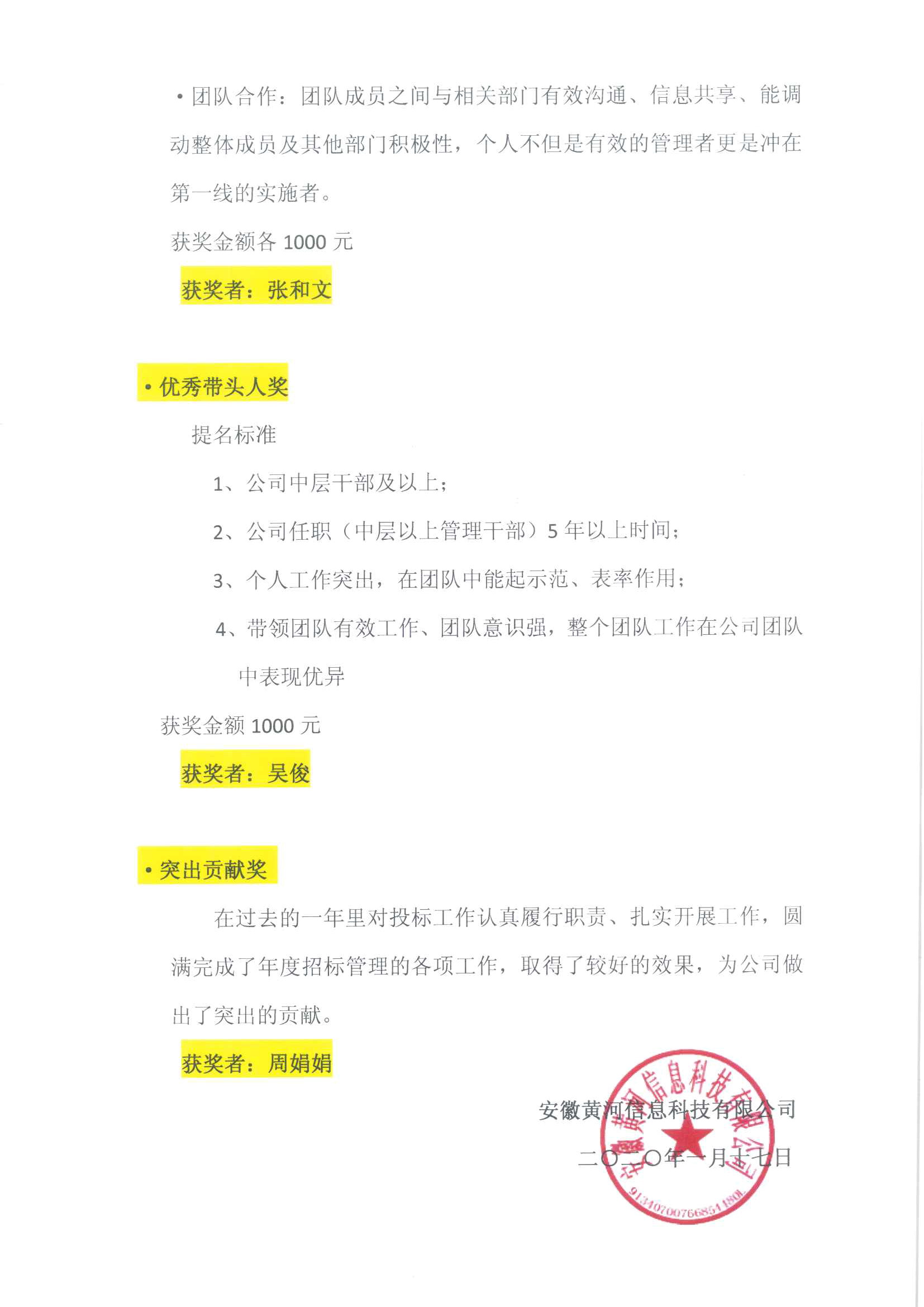 黃河科技關(guān)于表彰2019年度先進(jìn)集體和個人的決定文件