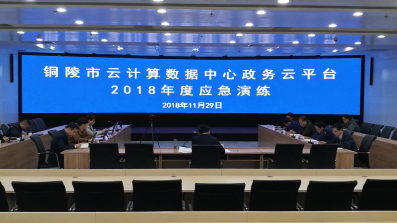 2018年11月29日“銅陵市云計(jì)算數(shù)據(jù)中心政務(wù)平臺(tái)2018年度應(yīng)急演練”在市政府信息辦三樓大會(huì)議里成功演練。