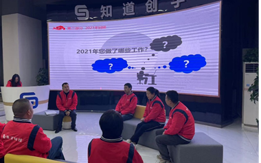 總經理黃河以對話座談的方式與各部門代表性的員工會談回顧2021,展望2022。